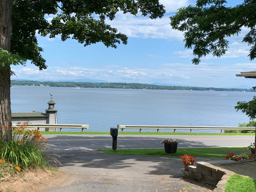 Enjoy the peace & tranquility of Lake Champlain – views abound from the many tranquil spots on this lake property with green spaces & mature trees. Take the stairs down to the lake for swimming, fishing, camp fires, or simple relaxation -enjoy coffee or wine while viewing Lake Champlain and the Green Mountains of Vermont.